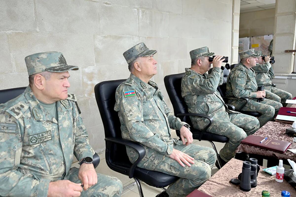 Руководство Министерства обороны Азербайджана и другие должностные лица проверили ход тактических учений с боевой стрельбой, проведенных в н-ской воинской части.