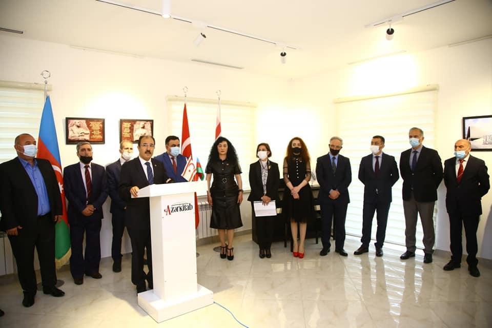 "Pandemiya səbəbindən ara verdiyimiz tədbirləri ilk olaraq bu sərgi ilə davam etdik", - deyə Növber xanım Kuzey Kıbrısla Türkiyənin və Azərbaycanın ayrılmaz bir can olduqlarını dilə gətirdi.