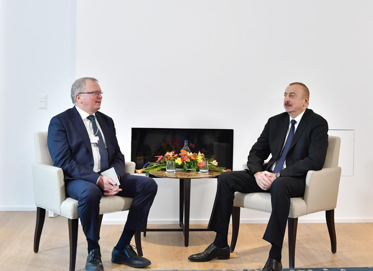 23 Yanvar 2019 13:56 SiyasətAzərbaycan Respublikasının Prezidenti İlham Əliyev yanvarın 23-də Davosda "Equinor" (keçmiş "Statoil") şirkətinin baş icraçı direktoru Eldar Saetre ilə görüşüb.
