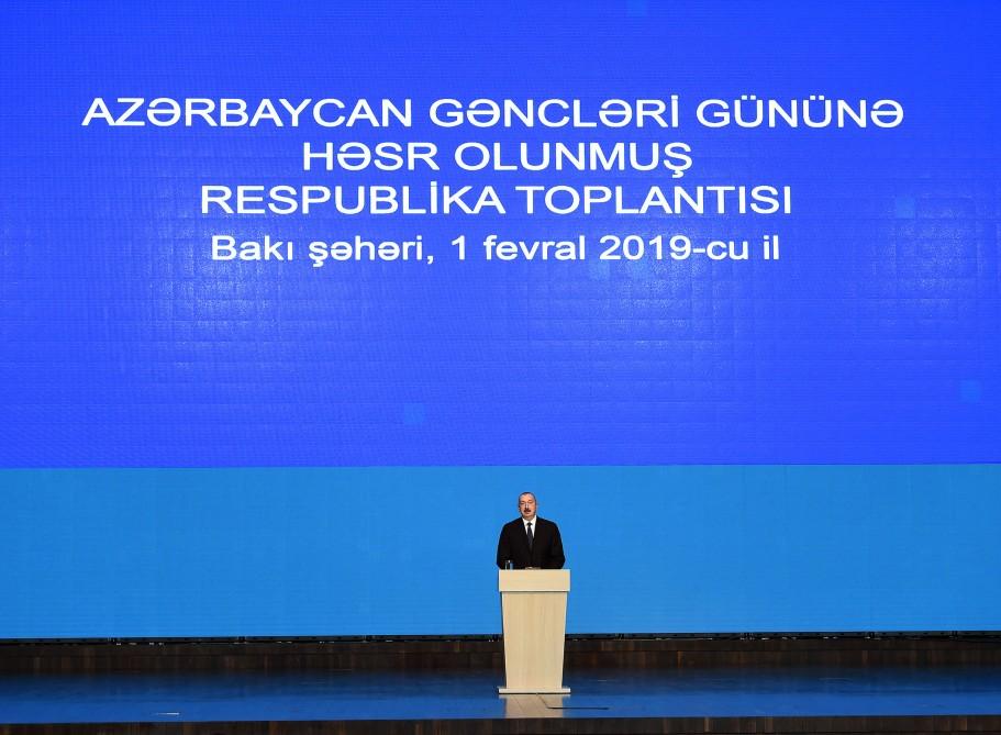 1 Fevral 2019 13:16 SiyasətBu gün Bakıda Azərbaycan Gəncləri Gününə həsr olunmuş respublika toplantısı keçirilib. Azərbaycan Respublikasının Prezidenti İlham Əliyev və birinci xanım Mehriban Əliyeva toplantıda iştirak ediblər.