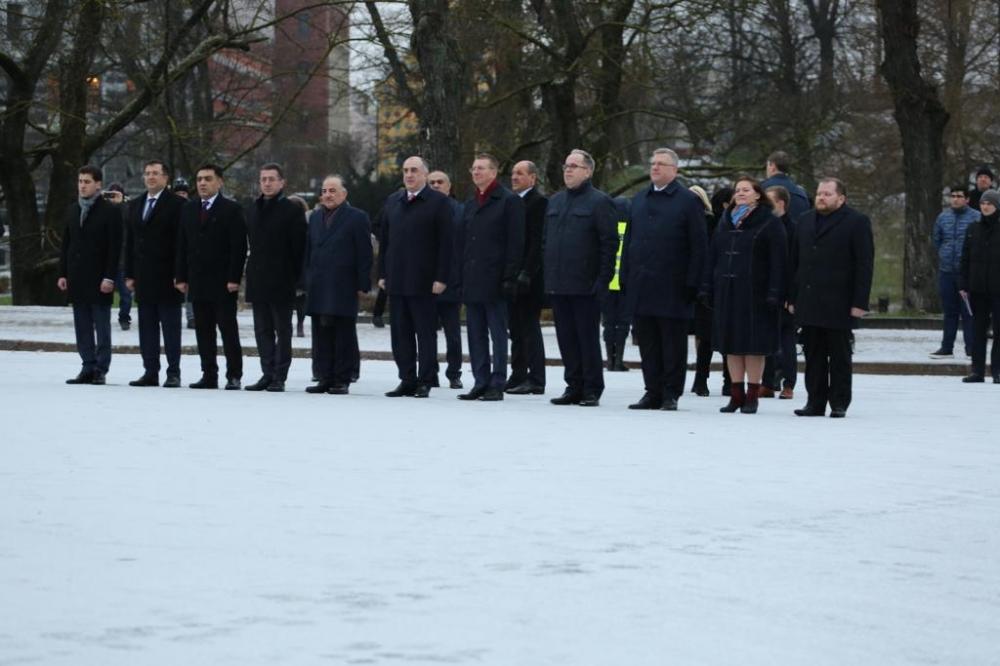Ermənistan-Azərbaycan Dağlıq Qarabağ münaqişəsinin həlli üzrə aparılan danışıqlar prosesinin son vəziyyəti barədə həmkarına məlumat verən nazir Elmar Məmmədyarov Latviyanın ikitərəfli və çoxtərəfli müstəvilərdə münaqişənin nizamlanması ilə bağlı ölkəmizin ədalətli mövqeyini dəstəkləməsinin yüksək qiymətləndirildiyini bildirib. Edqars Rinkeviçs Latviyanın münaqişənin sülh yolu ilə, beynəlxalq hüququn prinsipləri, xüsusilə ərazi bütövlüyü və suverenlik əsasında həllini dəstəklədiyini diqqətə çatdırıb. Görüşdə, həmçinin qarşılıqlı maraq doğuran məsələlər ətrafında fikir mübadiləsi aparılıb. Görüşdən sonra Azərbaycan və Latviya Xarici İşlər nazirlərinin mətbuat konfransı keçirilib. Daha sonra hər iki nazirin rəhbərlik etdiyi nümayəndə heyətlərinin iştirakı ilə "Azadlıq" abidəsinin önündə əklilqoyma mərasimi keçirilib. Mərasimdə Latviya və Azərbaycanın himnləri səslənib.