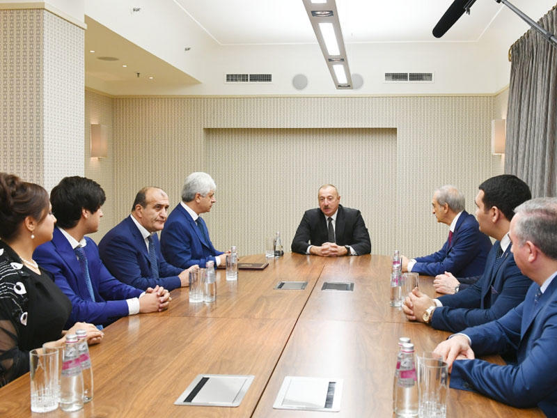 Prezident İlham Əliyev Sankt-Peterburqda fəaliyyət göstərən Azərbaycan diaspor təşkilatlarının rəhbərləri ilə görüşüb - FOTO