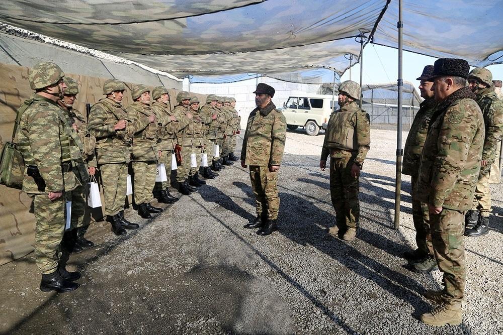 Müdafiə naziri ön xətdə hərbi qulluqçularla görüşüb