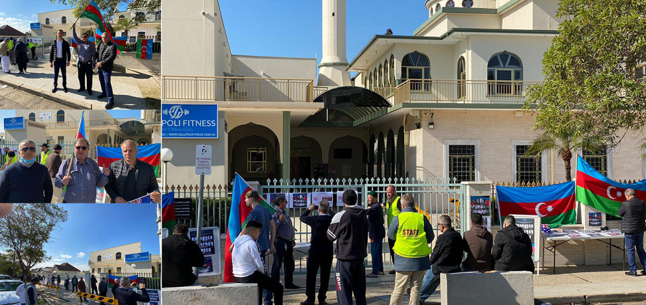 "OLAYLAR"-a Diasporla İş üzrə Dövlət Komitəsindən bildirilib ki, Azərbaycan-Avstraliya Turk Dərnəyinin sədri Imaməddin Qasimovun təşkilatçılığı ilə baş tutan aksiya zamanı məscidin önündə Azərbaycan və Avstraliya bayraqları dalğalandırılıb, Tovuz cəbhəsində qəhrəmanlıqla həlak olan şəhidlərimizin şəkilləri, Ermənistanın Azərbaycana qarşı işğalçılıq siyasəti aparmasına dair məlumatların əks olunduğu plakatlar nümayiş etdirilib.