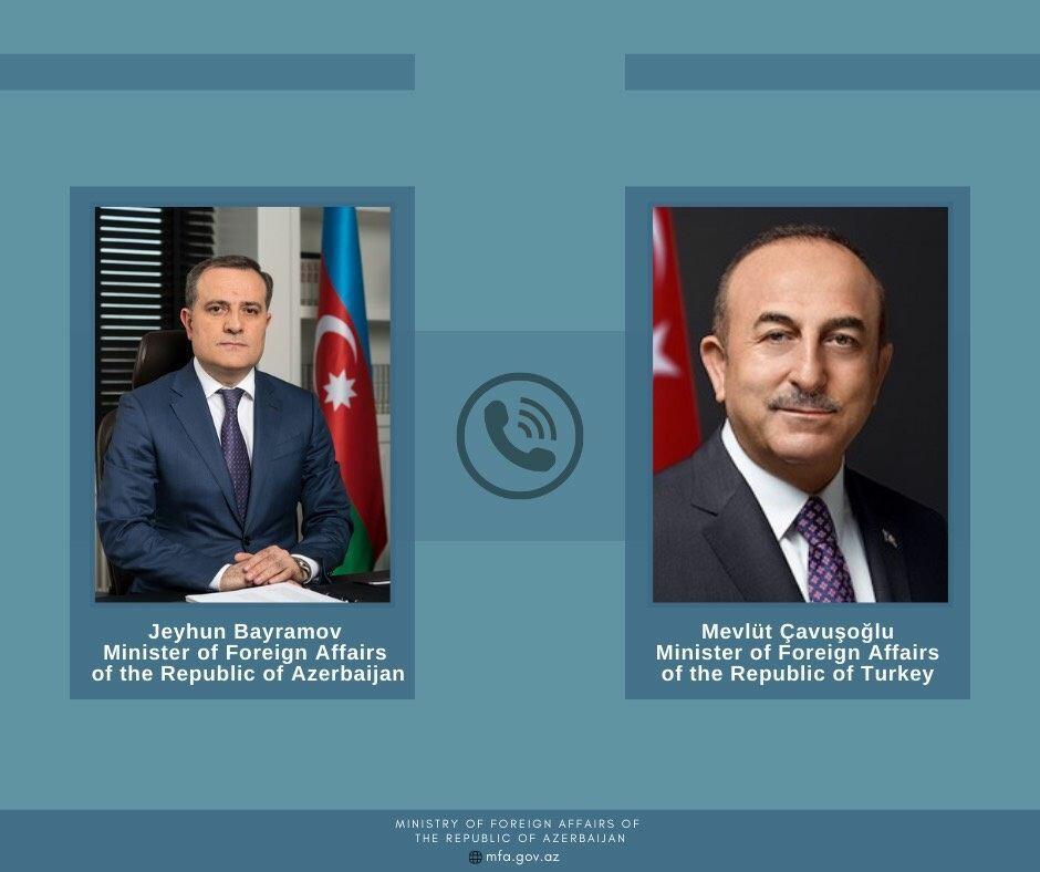 Azərbaycanın xarici işlər naziri Ceyhun Bayramov ilə Türkiyənin xarici işlər naziri Mövlut Çavuşoğlu arasında telefon danışığı baş tutub.