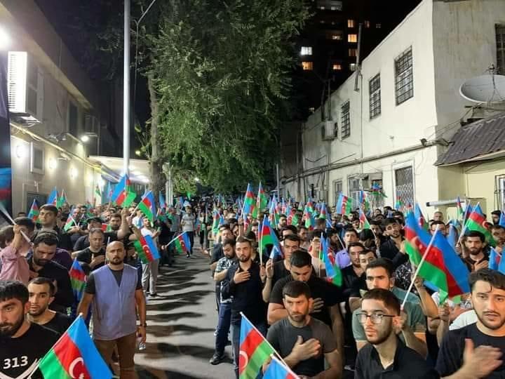 "Tanınmış iliahiyyatçı Hacı Şahin Həsənlinin rəhbərlik etdiyi Məşədi Dadaş məscidi. Foto bu gün çəkilib. Mən bir vətəndaş kimi dindarlarımızın belə bir mövqe sərgiləməsini alqışlayıram. Odlar yurdunun bütün məscidlərində Azərbaycan bayrağına bu cür ehtram sərgiləmək lazımdır...