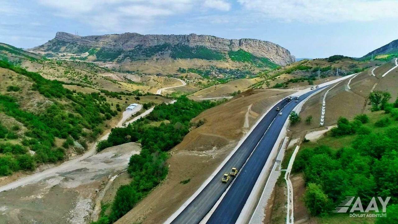 12 Avqust 2022 10:27 SiyasətBaşlanğıcını M6 Hacıqabul-Horadiz-Ağbənd-Zəngəzur dəhlizi magistral avtomobil yolundan götürməklə işğaldan azad edilmiş Füzuli, Xocavənd, Xocalı və Şuşa rayonları birləşdirən 81.6 km uzunluğa malik Əhmədbəyli-Füzuli-Şuşa avtomobil yolunun beynəlxalq magistral normalarına uyğun tikintisi sürətlə davam etdirilir.