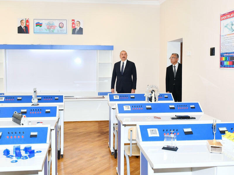 Prezident İlham Əliyev məktəbin yeni binasının çağırışa qədər hərbi hazırlıq otağında, ekosinifdə, biologiya kabinetində, informatika və rəsm otaqlarında, yeməkxanada, əmək otağında və fizika kabinetində yaradılan şəraitlə tanış oldu.