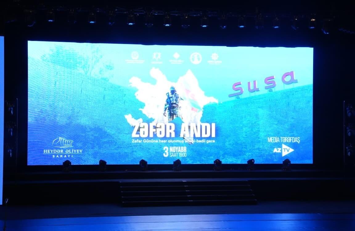 Bədii hissədə əməkdar artist Nicat Kazımovun rejissorluğu və kinodramaturq İlqar Fəhminin ssenarisi əsasında, incəsənət xadimlərinin və istedadlı gənclərin ifasında hazırlanmış "Zəfər Andı" bədii kompozisiyası nümayiş olunub.