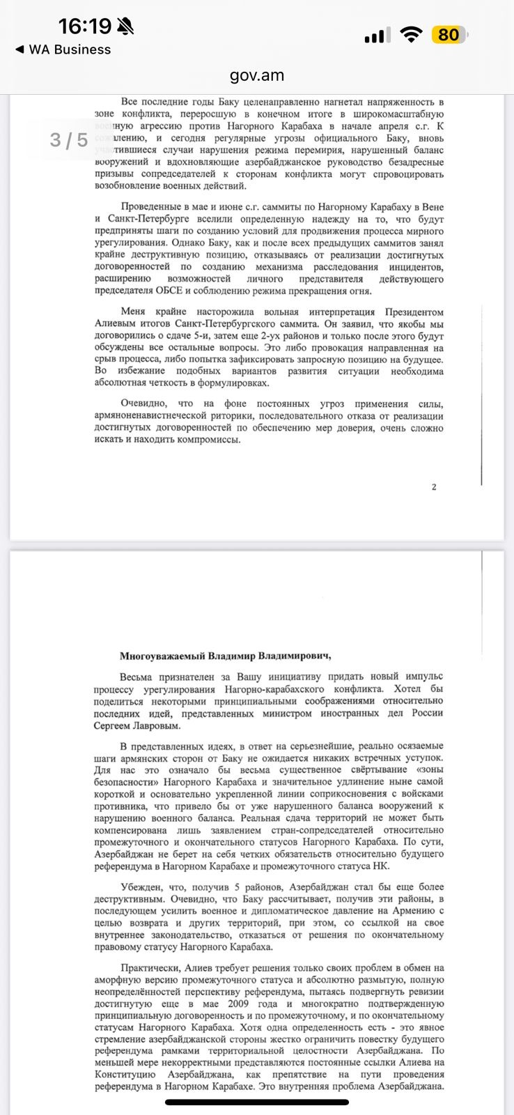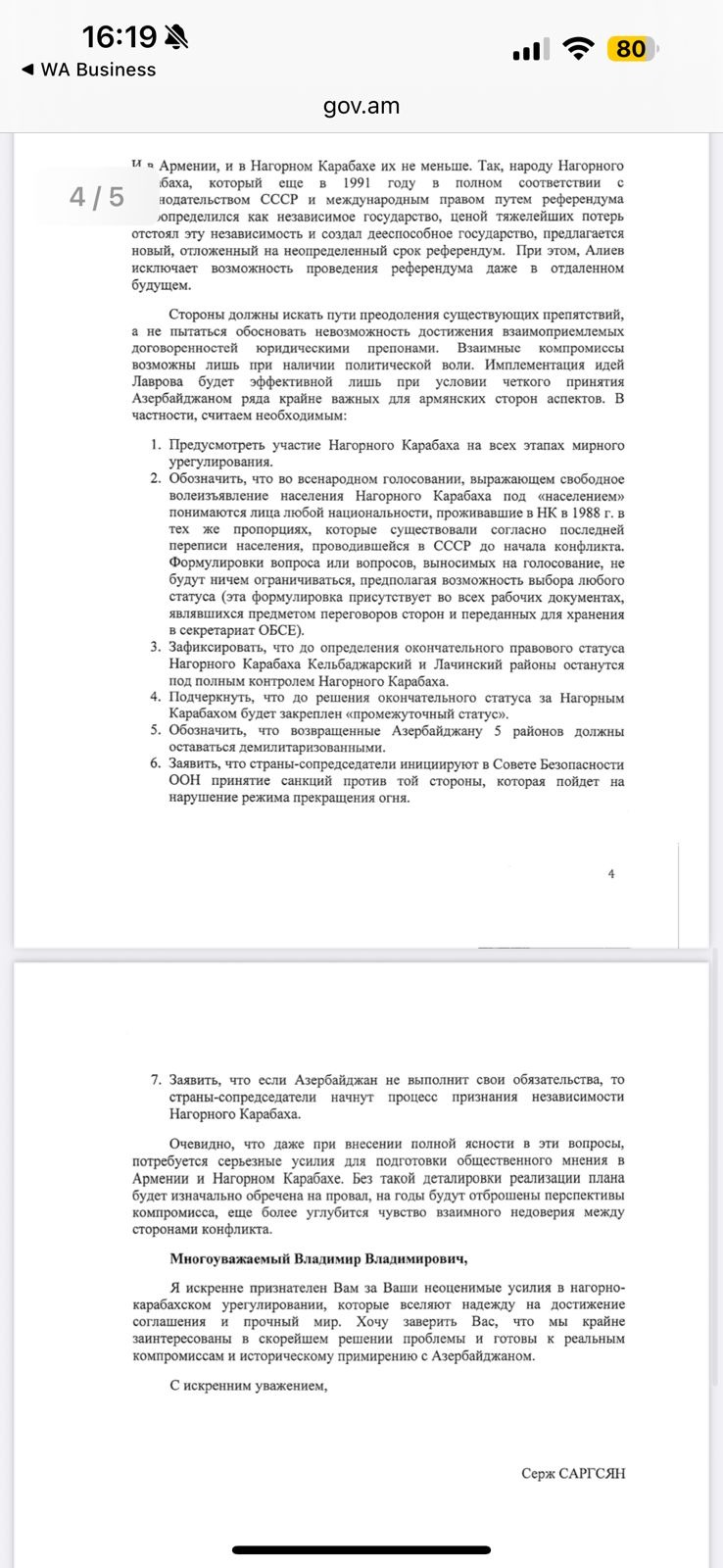 Sarkisyanın Putinə MƏKTUBU YAYILDI - TAM MƏTN