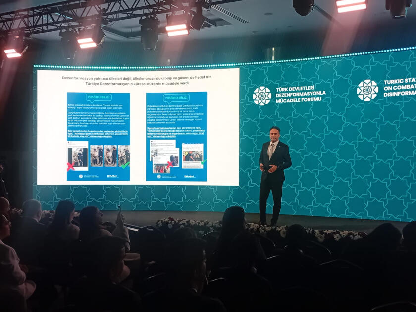 AZƏRTAC xəbər verir ki, Türkiyə Prezidenti Administrasiyasının Kommunikasiya İdarəsi yanında Dezinformasiyaya Qarşı Mübarizə Mərkəzinin koordinatoru Deniz Demir Türkiyənin dezinformasiya ilə mübarizə sahəsində təcrübəsinə həsr olunmuş təqdimatla çıxış edib.