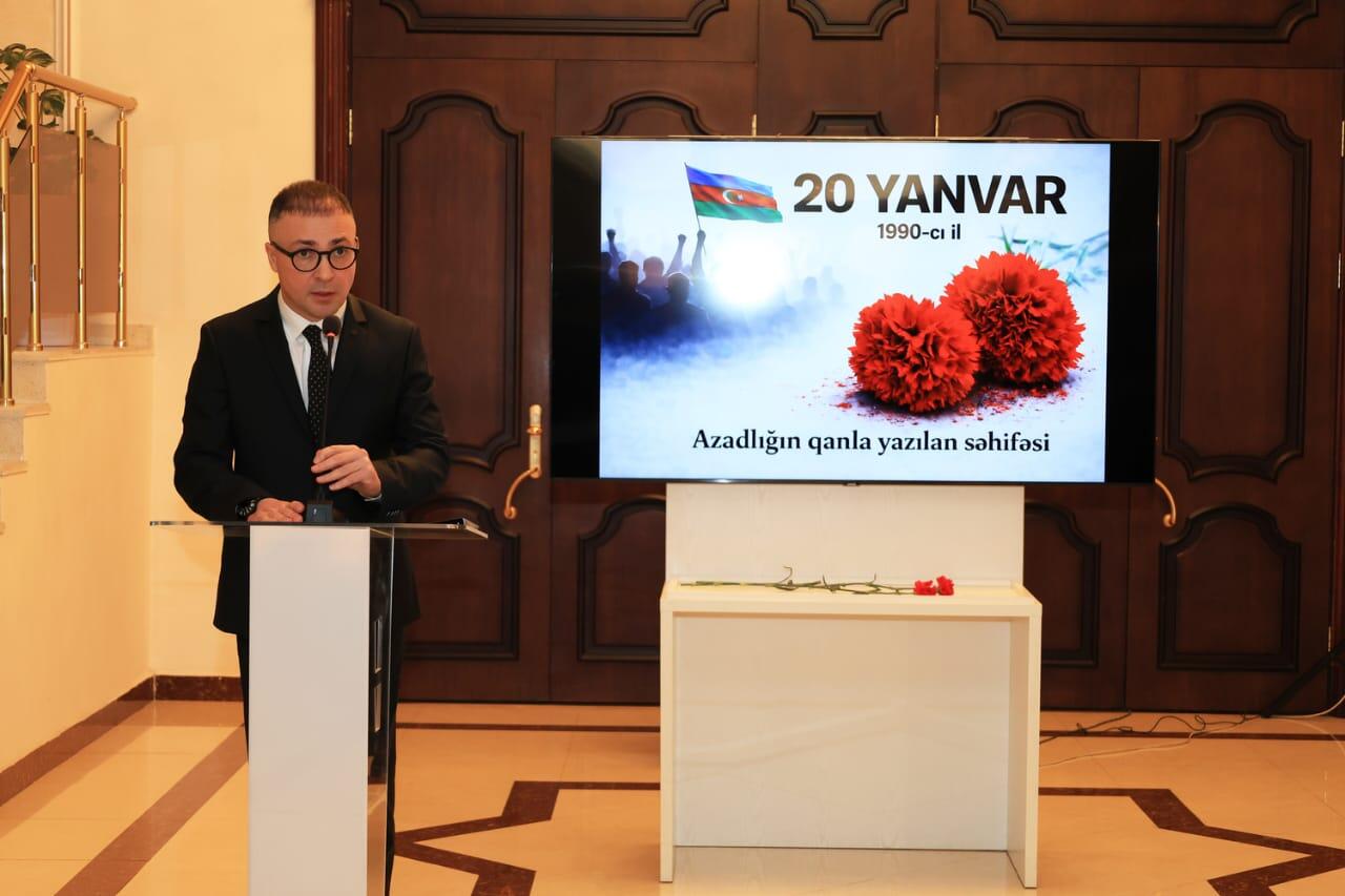 Azərbaycan Mədəniyyət Mərkəzinin direktoru Akif Marifli çıxışında 20 Yanvarın Azərbaycan xalqının həm dərin faciəsi, həm də qəhrəmanlıq və milli iradə salnaməsi olduğunu vurğulayıb. O bildirib ki, həmin gün xalqımız ağır siyasi və mənəvi sınaqlarla üzləşsə də, öz azadlıq ideallarına sadiqliyini qoruyub saxlamışdır. Direktor qeyd edib ki, Ümummilli Lider Heydər Əliyev 20 Yanvar faciəsinə ilk gündən etibarən prinsipial mövqe nümayiş etdirmiş, bu hadisələrə obyektiv siyasi və hüquqi qiymət verilməsinin əsasını qoymuşdur. Akif Marifli vurğulayıb ki, bu gün Azərbaycan Respublikasının Prezidenti İlham Əliyev tərəfindən də 20 Yanvar şəhidlərinin xatirəsinə xüsusi diqqət yetirilir, onların qəhrəmanlığı dövlət səviyyəsində ehtiramla yad edilir və gənc nəslin vətənpərvərlik ruhunda tərbiyəsində mühüm yer tutur.