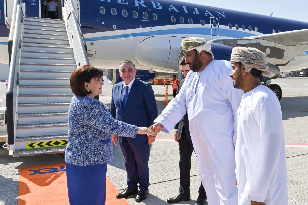 Məsqət Beynəlxalq Hava Limanında Milli Məclisin sədrinin başçılıq etdiyi parlament nümayəndə heyətini Oman Sultanlığı Şura Məclisinin Azərbaycanla parlament dostluq qrupunun üzvü Məhəmməd bin Salim Əs-Süleymani, Şura Məclisinin üzvləri, Azərbaycanın Omandakı səfiri Rəşad İsmayılov və digər rəsmi şəxslər qarşılayıblar.
