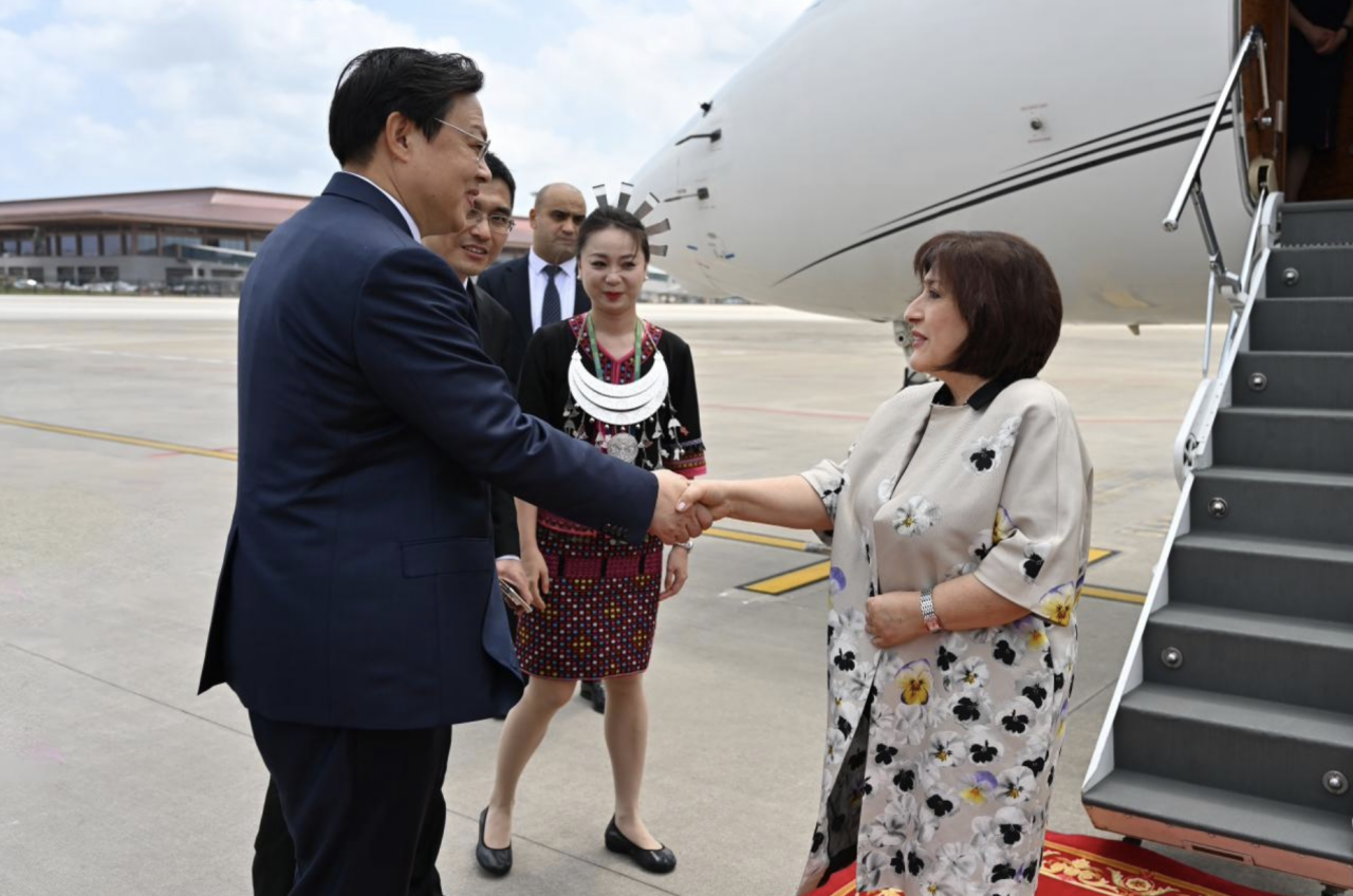 Qionghai Boao beynəlxalq hava limanında Milli Məclisin sədrini Hainan Əyalətinin vitse-qubernatoru Yanq Quigianq, Azərbaycanın Çindəki səfiri Bünyad Hüseynov və digər rəsmi şəxslər qarşılayıblar.