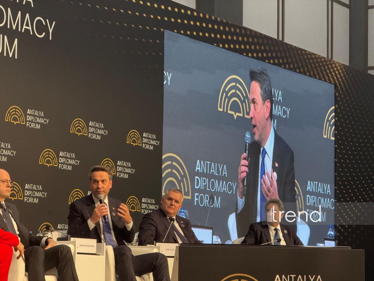 Trend-in Türkiyəyə ezam olunmuş xüsusi müxbiri xəbər verir ki, bu barədə Türkiyənin energetika və təbii sərvətlər naziri Alparslan Bayraktar Antalya Diplomatiya Forumunda bildirib.
