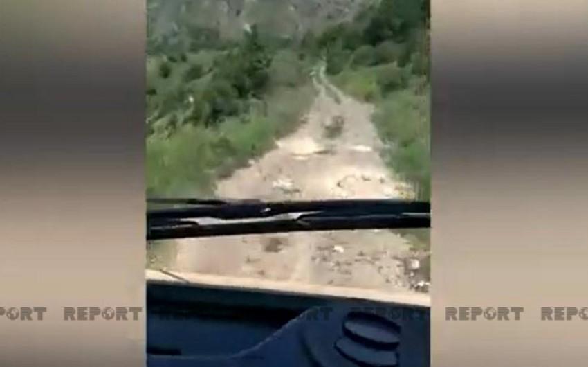 Görüntüləri minaya düşən nəqliyyat vasitəsində qabaq tərəfdə oturmuş şəxslərdən biri çəkib.