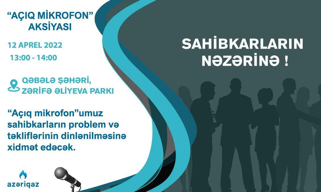 "Azəriqaz" İB-nin rəhbər şəxsləri Qəbələ şəhəri, Zərifə Əliyeva parkında baş tutacaq aksiyada sahibkarları maraqlandıran sualları cavablandıracaqlar. "Səyyar qəbul otağı" aprelin 12-də saat 13:00-dan 14:00-a qədər sahibkarların xidmətində olacaq. İstənilən təklif və problemlər yerindəcə aydınlaşdırılacaq və müvafiq qərarlar veriləcək.