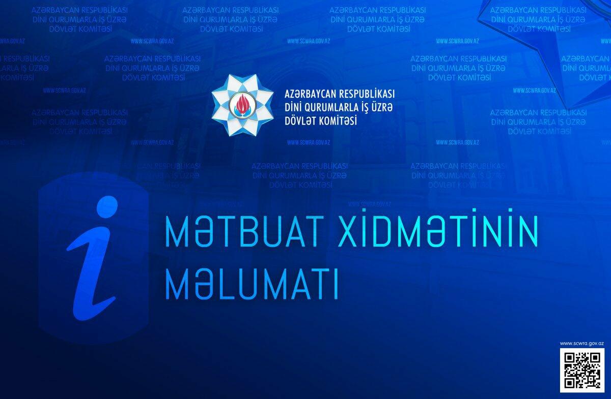 Dini Qurumlarla İş üzrə Dövlət Komitəsi MƏLUMAT YAYDI