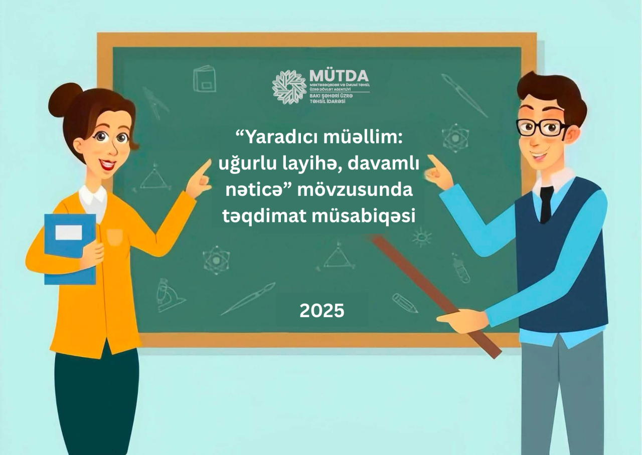 12:38 SosialBakı Şəhəri üzrə Təhsil İdarəsi (BŞTİ) tərəfindən keçirilən "Yaradıcı müəllim: uğurlu layihə, davamlı nəticə" mövzusunda təqdimat müsabiqəsinin qalibləri bəlli olub.