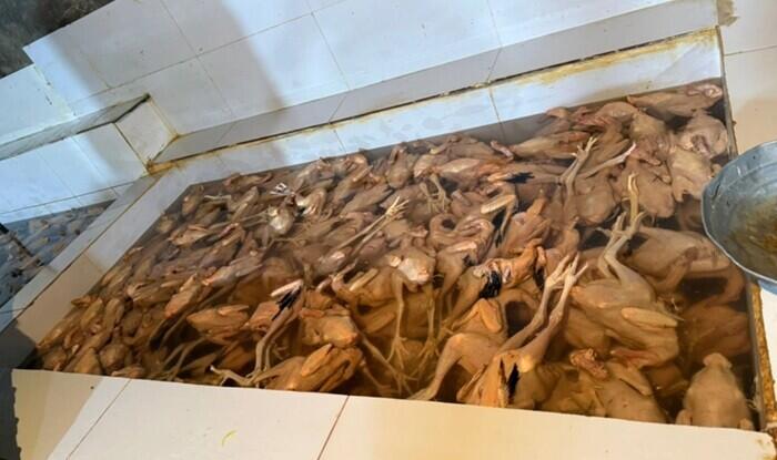 Müəssisə daxilində havalandırma sistemlərinin quraşdırılmaması nəticəsində kondensasiya prosesi zamanı yaranmış suların, o cümlədən yağış sularının tavandan birbaşa qida məhsullarının üzərinə töküldüyü, kəsim prosesində sanitar-gigiyenik tələblərə riayət edilmədiyi, tüklərin təmizlənməsi, pörtlədilməsi, içalatın təmizlənməsinin eyni sahədə həyata keçirildiyi, kəsilmiş toyuqların birbaşa döşəmə üzərinə yığıldığı müəyyən edilib. Eyni zamanda "kənd toyuğu" təəssüratı yaratmaq məqsədilə mənşəyi məlum olmayan rənglərdən istifadə edilərək toyuqların rənglənməsi halları da aşkarlanıb. Sahibkar ev quşlarının bazarlarda satışa çıxarıldığını bildirib.