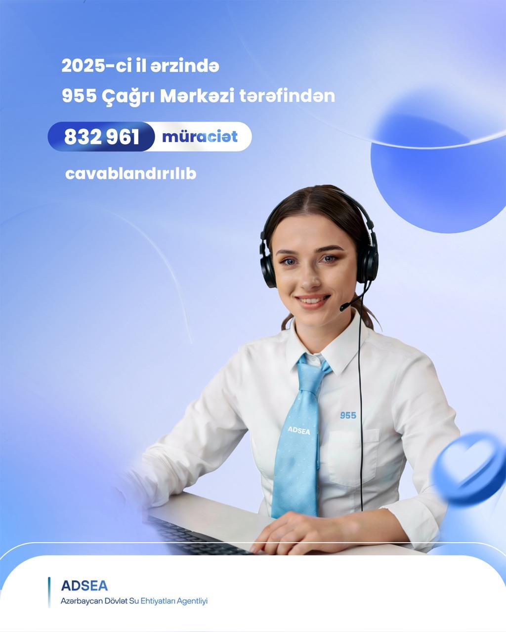 2025-ci il ərzində 955 Çağrı Mərkəzi tərəfindən 832 961 müraciət cavablandırılıb. Cavablandırılan zənglərdən 492 993-ü (55 %) araşdırmaya ehtiyac olmadan birbaşa cavablandırılıb, 297 538 zəng (33 %) əsasında iş əmri yaradılıb, 42 430 müraciət (5 %) isə sorğu xarakterli olub.
