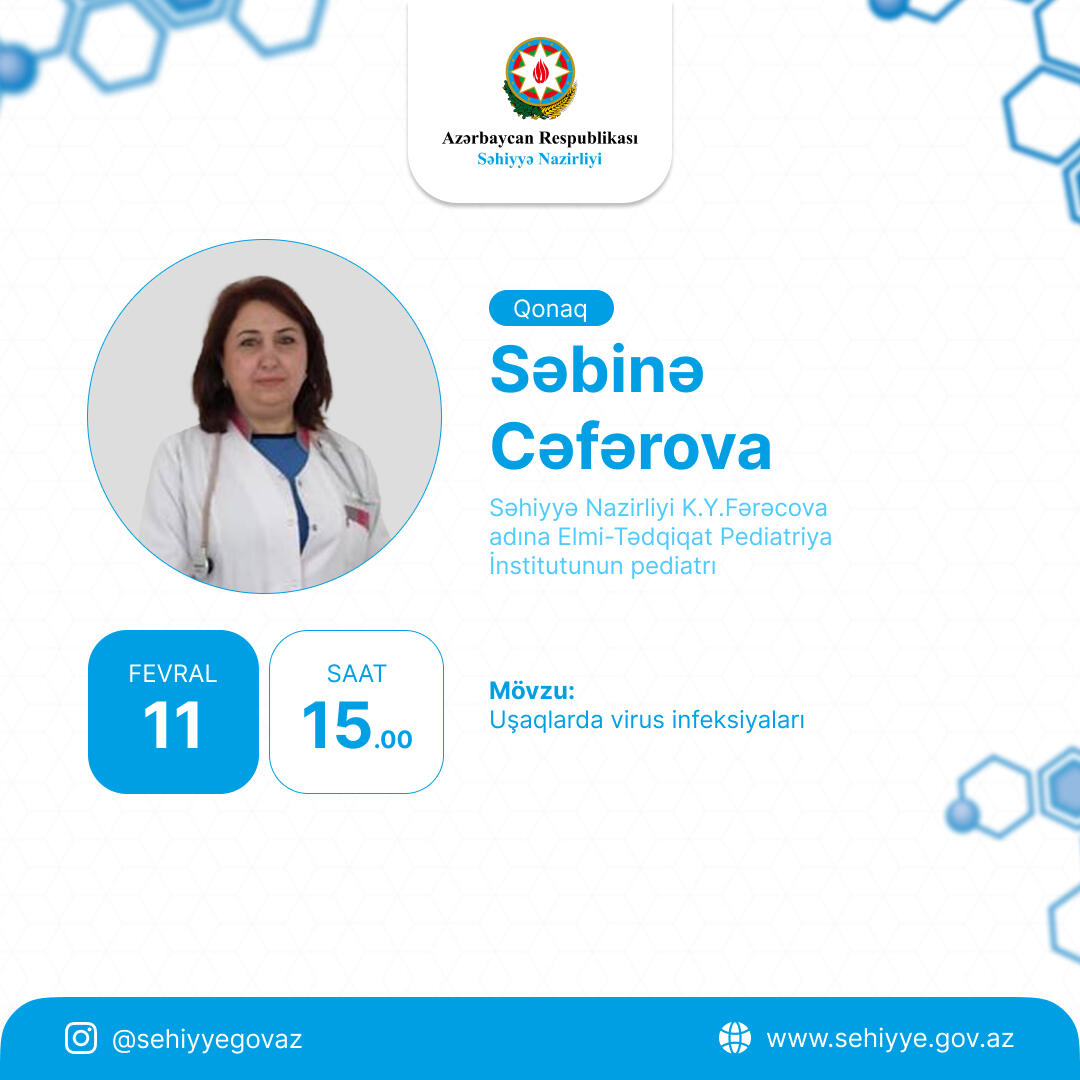 Bu fikirləri Səhiyyə Nazirliyinin rəsmi "Instagram" hesabında keçirilən canlı yayım zamanı nazirliyin K.Y.Fərəcova adına Elmi-Tədqiqat Pediatriya İnstitutunun pediatrı Səbinə Cəfərova açıqlayıb.