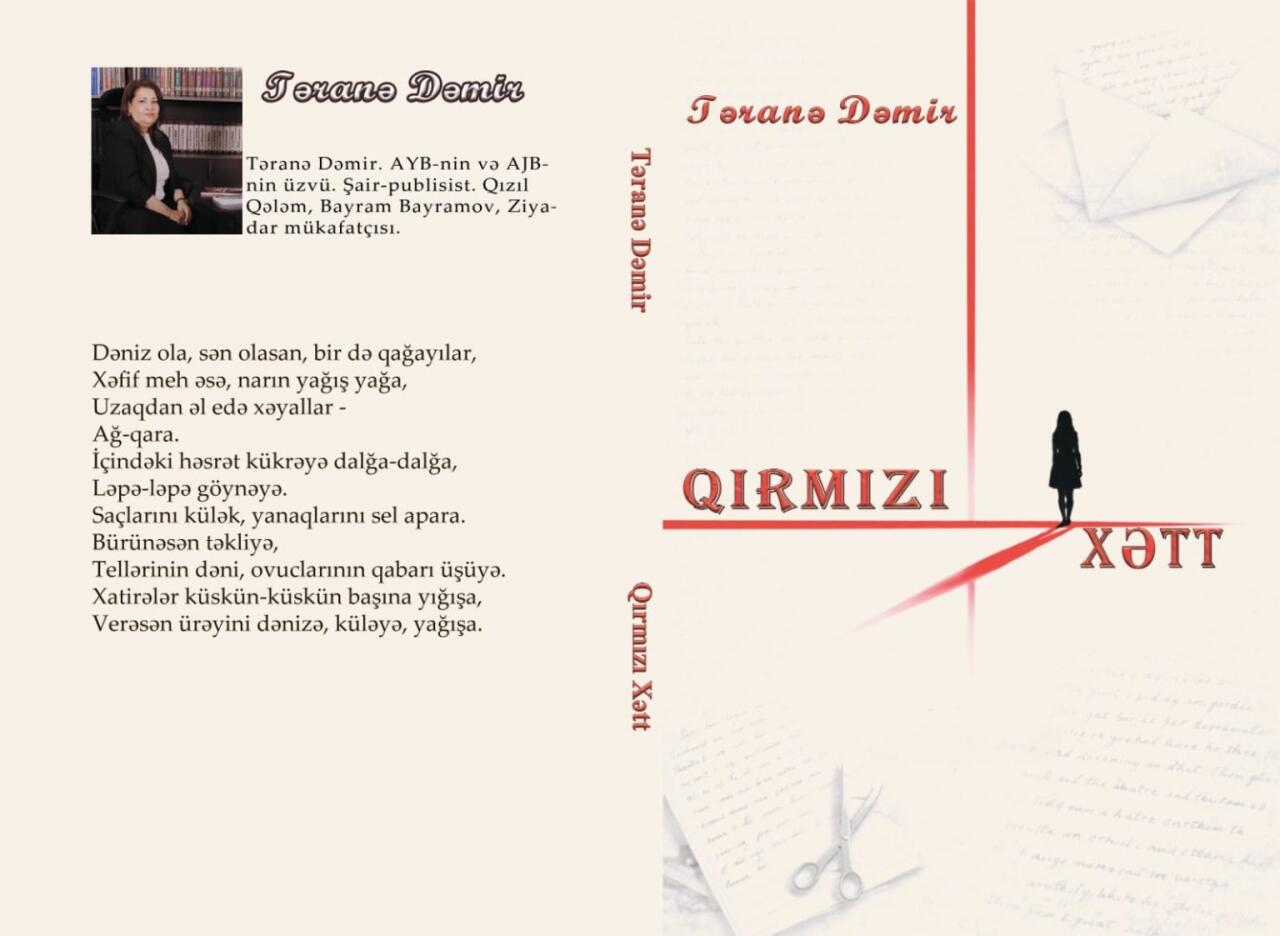 Şair-publisist Təranə Dəmirin poema və şeirlərdən ibarət yeni kitabı işıq üzü görüb. "Qırmızı xətt" adlı bu kitabda yazarın son ildə yazdığı şeirləri və "Ömrün beşinci fəsli" adlı poeması yer alıb. Kitab "PAN" nəşriyyatında ərsəyə gəlib. Kitabın redaktoru AYB və AJB-nin üzvü, şair-publisist Zabil Pərvizdi.