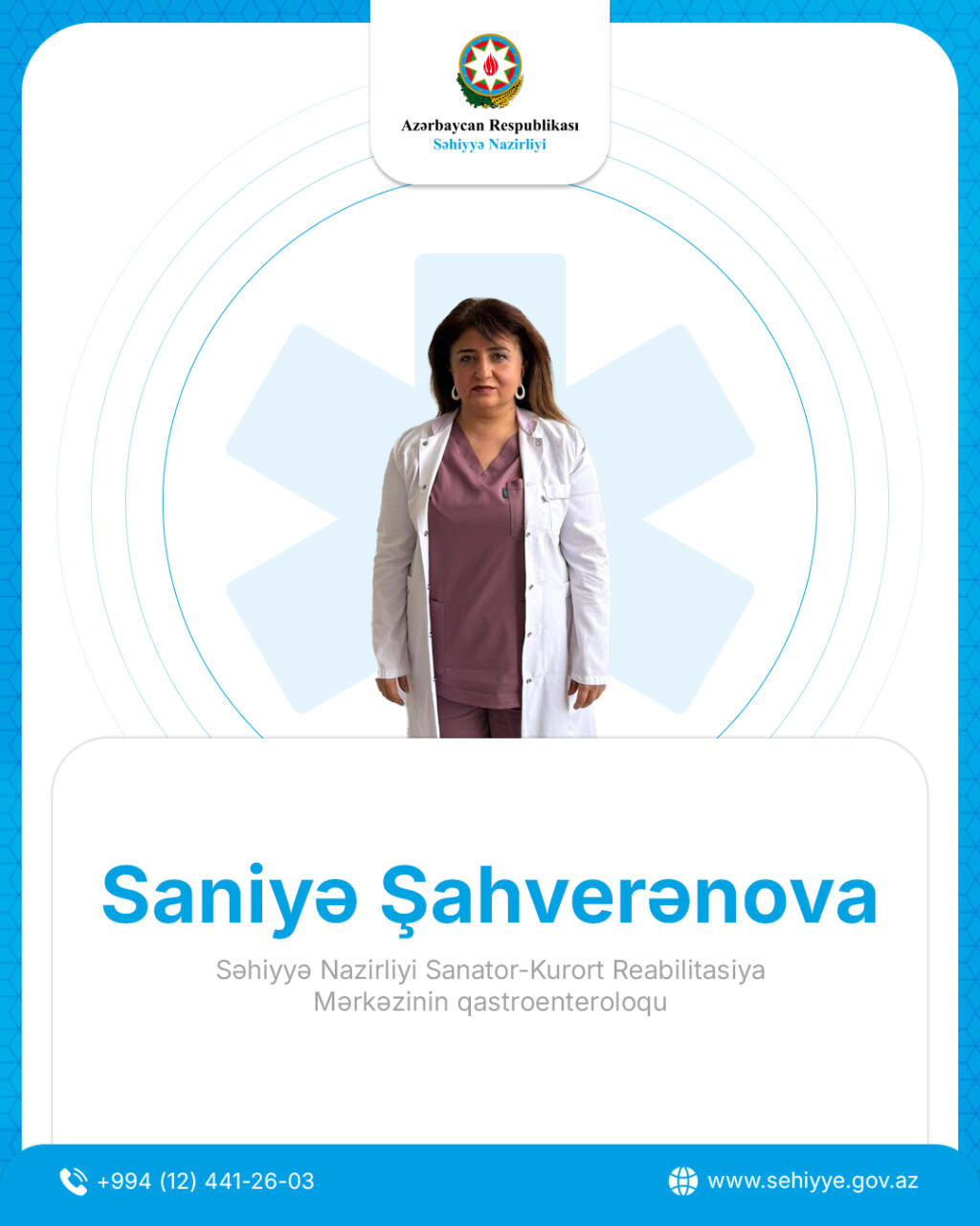 Səhiyyə Nazirliyi Sanator-Kurort Reabilitasiya Mərkəzinin qastroenteroloqu Saniyə Şahverənova ilə müsahibəni təqdim edir.