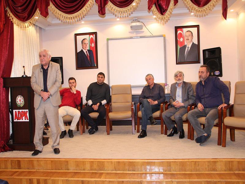 Daha sonra "Dolu" filminin yaradıcı heyəti - ssenari müəllifi Aqil Abbas, əsas rolların ifaçıları Məmməd Səfa, Rza Rzayev, Şamil Süleymanov, Elvin Əhmədov, Cavanşir Hadıyev müəllim və tələbələrin filmlə bağlı suallarını cavablandırıblar. Sonda tələbələrə Aqil Abbasın kitabları paylanıb.