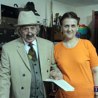 Əvvəl qrim otağına qalxıb, Mirzə Səməndər cildinə bürünməyinin şahidi olduq. Deyir, keçmiş illərdə qrimi özü edərmiş, müasir zamanın tələbi isə başqadır. O da zamana uyğunlaşıb, özünü peşəkar qrim ustasına həvalə edə bilir.