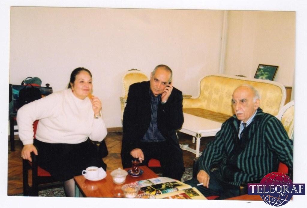 - Şəfiqə Məmmədova, Rasim Ocaqov və mən. Kinoittifaqda oturmuşuq, onlar söhbət edir, mən də telefonla danışıram.