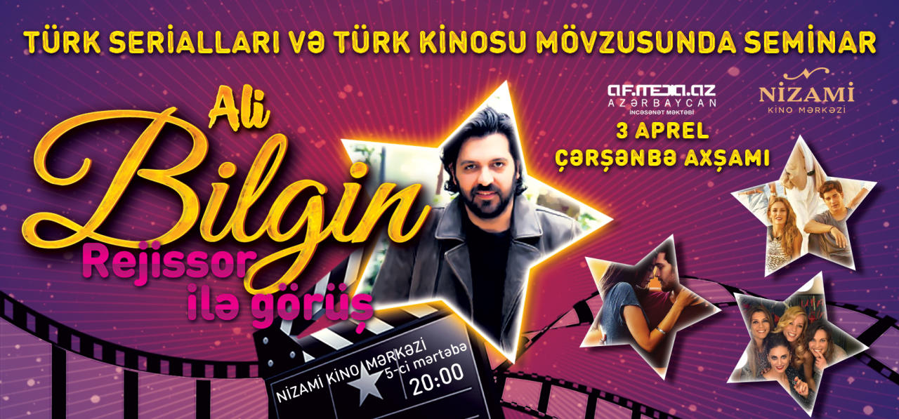 Aprelin 3-də saat 19-00-da Nizami Kino Mərkəzində keçiriləcək seminarda Ali Bilgin, Türkiyədəki serial və film sektorunda baş verən proseslər haqqında təcrübəsi ilə bölüşəcək, seminarda iştirak edən incəsənət adamlarının suallarına cavablandıracaq.