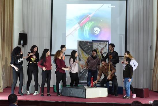 Martın 2-də Azərbaycan Dillər Universitetində Gənclər və İdman Nazirliyinin və Azərbaycan Respublikası Narkomanlığa və Narkotik Vasitələrin Qanunsuz Dövriyyəsinə Qarşı Mübarizə üzrə Dövlət Komissiyasının təşəbbüsü ilə Bakı Uşaq Teatrı tərəfindən səhnələşdirilən “Həyatla oyun” tamaşası nümayiş olunub. Olaylar.az bildirir ki, öncə universitetin Tərbiyə işləri üzrə prorektoru vəzifəsini icra edən Sərraf Hüseynov bu tamaşanın nümayişinə görə Gənclər və İdman Nazirliyinə, eyni zamanda Bakı Uşaq Teatrının işçilərinə dərin minnətdarlığını bildirib. O, cəmiyyətin ən böyük problemlərindən biri olan narkomaniya və QİÇS-lə mübarizənin əhəmiyyətini vurğulayıb, bu tamaşanın tələbələri maarifləndirməkdə və onların bu bəla ilə mübarizədə daha qətiyyətli addımlar atmasında əhəmiyətli rolu olacağını diqqətə çatdırıb.