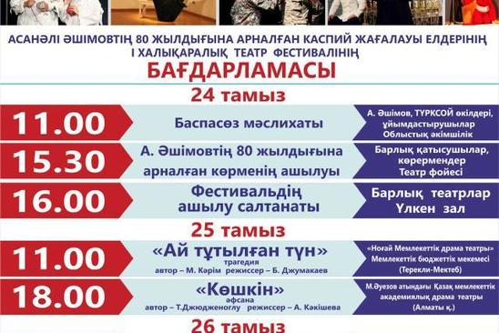 Avqustun 24-dən 28-dək Qazaxıstanın Aktau şəhərində Xalq Artisti Asanali Aşimovun 80 illiyinə həsr olunan Xəzəryanı Ölkələrin Birinci Beynəlxalq Teatr Festivalı keçiriləcək. Azərbaycanı Beynəlxalq tədbirdə “Yuğ” Teatrı təmsil edəcək. Teatrdan “Olaylar” -a bildirilib ki, festivalda rejissor Mikayıl Mikayılovun quruluş verdiyi “Medeya. Sekvensiya 001.” tamaşası nümayiş olunacaq.