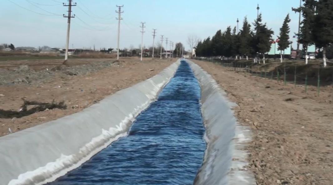 Beyləqanda torpaq məcralı kanal beton üzlüyə alınıb