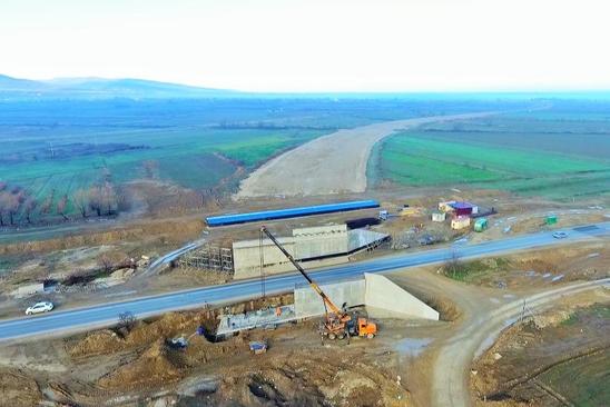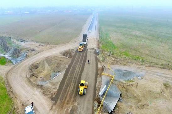 Beynəlxalq nəqliyyat dəhlizinin tərkib hissəsi olan magistralın tikintisi davam etdirilir