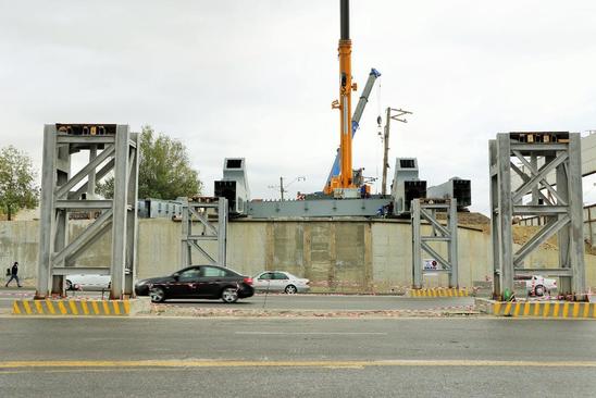 Xırdalan dairəsində yeni körpünün aşırım tirlərinin montajına başlanılıb