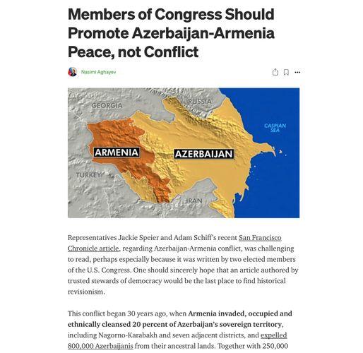 12 Fevral 2021 10:30 Xarici siyasətAzərbaycanın Los Ancelesdəki baş konsulu Nəsimi Ağayev ermənipərəst mövqeləri ilə seçilən ABŞ konqresmenləri Adam Şif (Adam Schiff) və Cəki Spierin (Jackie Speier) bu yaxınlarda dərc etdirdikləri, Azərbaycanı hədəf alan, saxta məlumatlarla zəngin və qərəzli məqaləyə cavab məqaləsi ilə çıxış edib.
