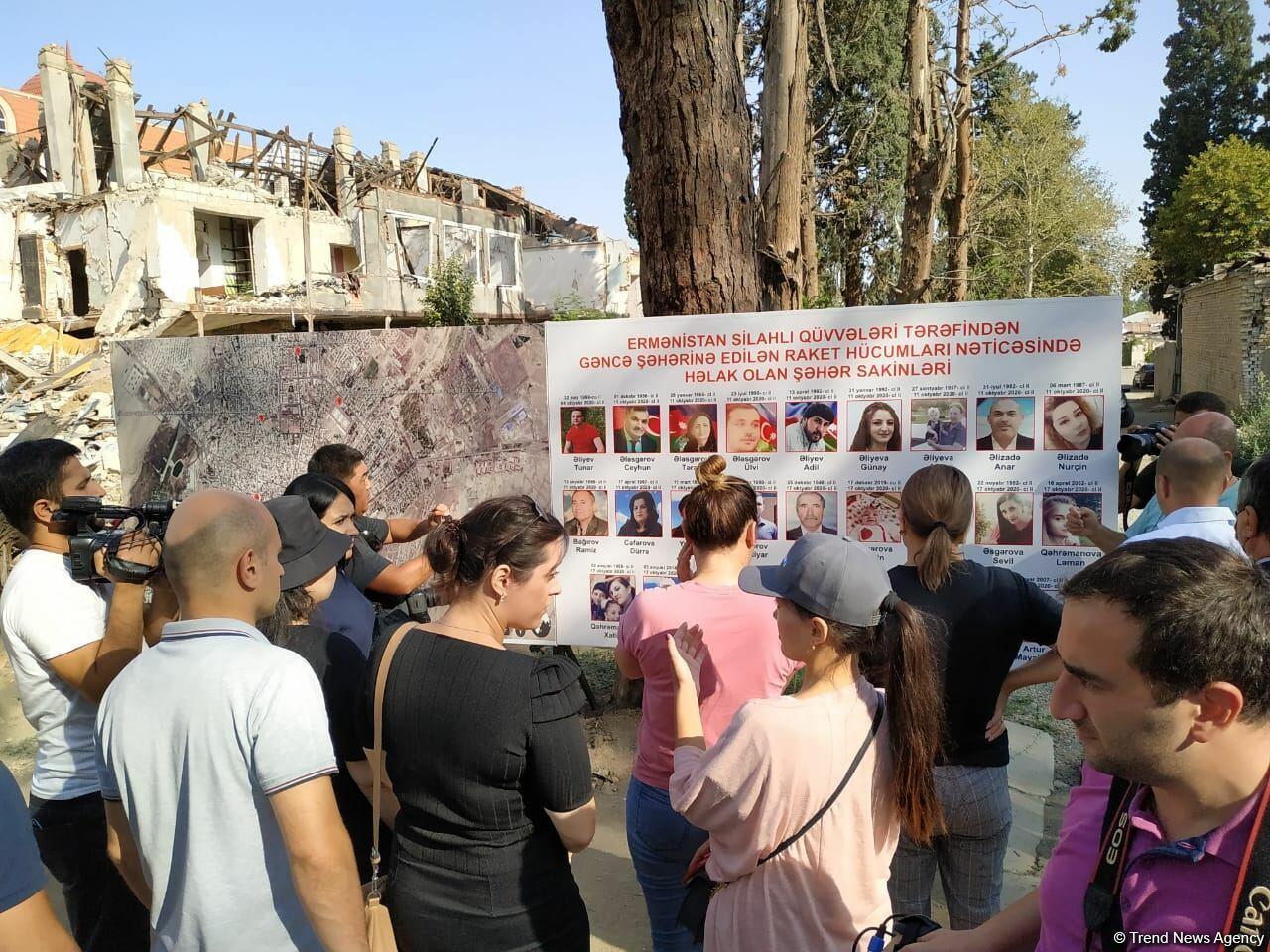 Xarici media orqanları Gəncədə erməni terrorundan dağılan yerlərə baş çəkiblər FOTO