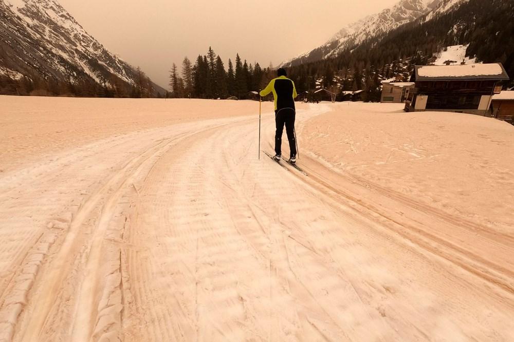 Şimali Afrikadakı Sahara səhrasından gələn toz səbəbindən Avropaya yağan qar narıncı rəngə boyanıb.