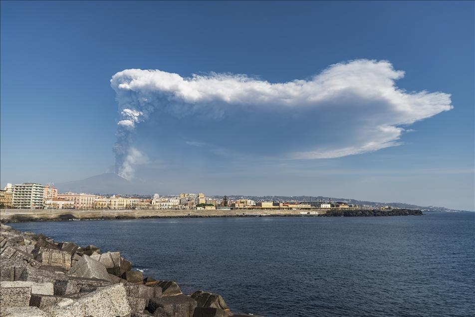 İtaliyanın cənubundakı aktiv vulkanlardan biri olan Etnanın aktivliyi nəticəsində meydana çıxan mənzərə: